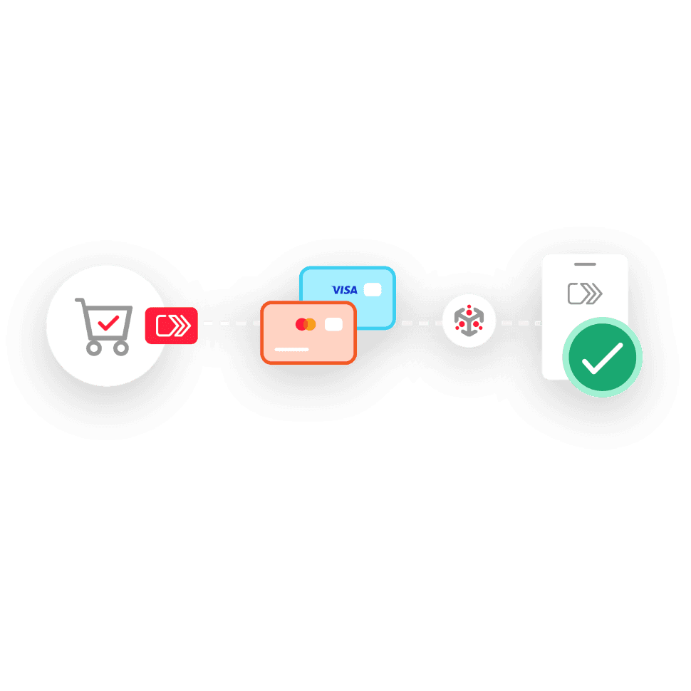 Unterstützt Visa®- und Mastercard®-Nutzer auf Desktop-, Laptop-, Mobil- und Tablet-Geräten